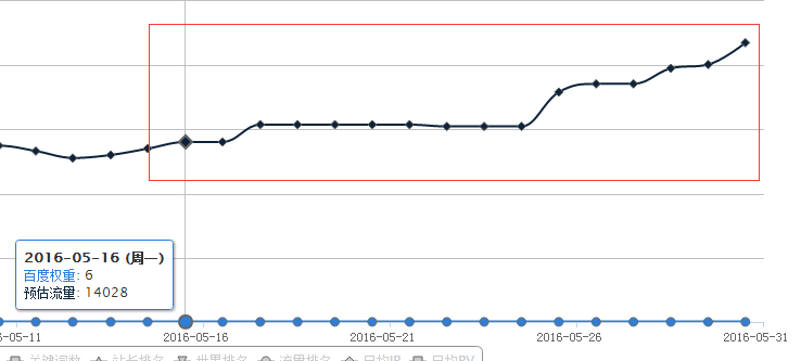 如果網站存在大量的死鏈,并且沒有做404,那么網站的流量是會呈現下滑的趨勢的。這點可以從我的網站清晰的判斷出來,我在5.16開始著手網站死鏈的處理,主要是設置404頁面和提交死鏈并設置404狀態碼,隨后的兩周流量慢慢開始上升: