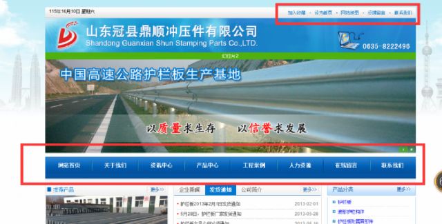 其中【加入收藏】、【設(shè)為首頁】、【網(wǎng)站地圖】小編倒是點擊沒什么效果,【反饋留言】又與中心導(dǎo)航中的【在線留言】重復(fù),【聯(lián)系我們】也重復(fù),這類型的導(dǎo)航豈不是多此一舉嗎?在來看看中心導(dǎo)航的布局如何,第一位是【網(wǎng)站首頁】,這個沒錯,幾乎所有網(wǎng)站的首頁都布局在第一位,得到的權(quán)重較高,再來看看第二個【關(guān)于我們】,小編真的無力去吐槽這類的布局,將【關(guān)于我們】放在僅次于首頁的位置,分散了過多的權(quán)重不說,還提供不了有價值的東西,百度蜘蛛給予的評價分就相對較低,在接著往下看,【資訊中心】和【產(chǎn)品中心】【工程案例】也許對瀏覽用戶有效果,所以在這里不做討論,再來看看【人力資源】【在線留言】【聯(lián)系我們】,這三個導(dǎo)航也并沒有給瀏覽用戶實實在在的價值內(nèi)容,整個網(wǎng)站完全沒有體現(xiàn)一個價格的參考以及廠家的優(yōu)勢,試問,這類的網(wǎng)站靠什么進入百度首頁呢?原因有三:1.其他同行的內(nèi)容比不過這家;2.基礎(chǔ)優(yōu)化工作做的久;3.大量購買單向鏈接走作弊道路。